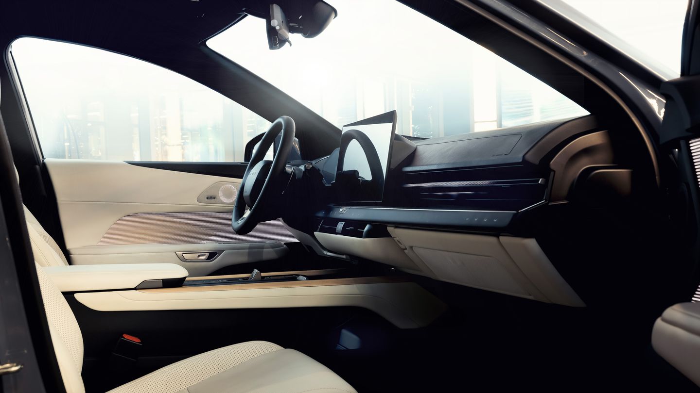 The ES 350e produces 221 hp and is rated at up to 480 km of range, while the ES 500e AWD steps up to 338 hp and adds the DIRECT4 all-wheel drive system that continuously adjusts torque distribution based on road conditions and driver inputs.