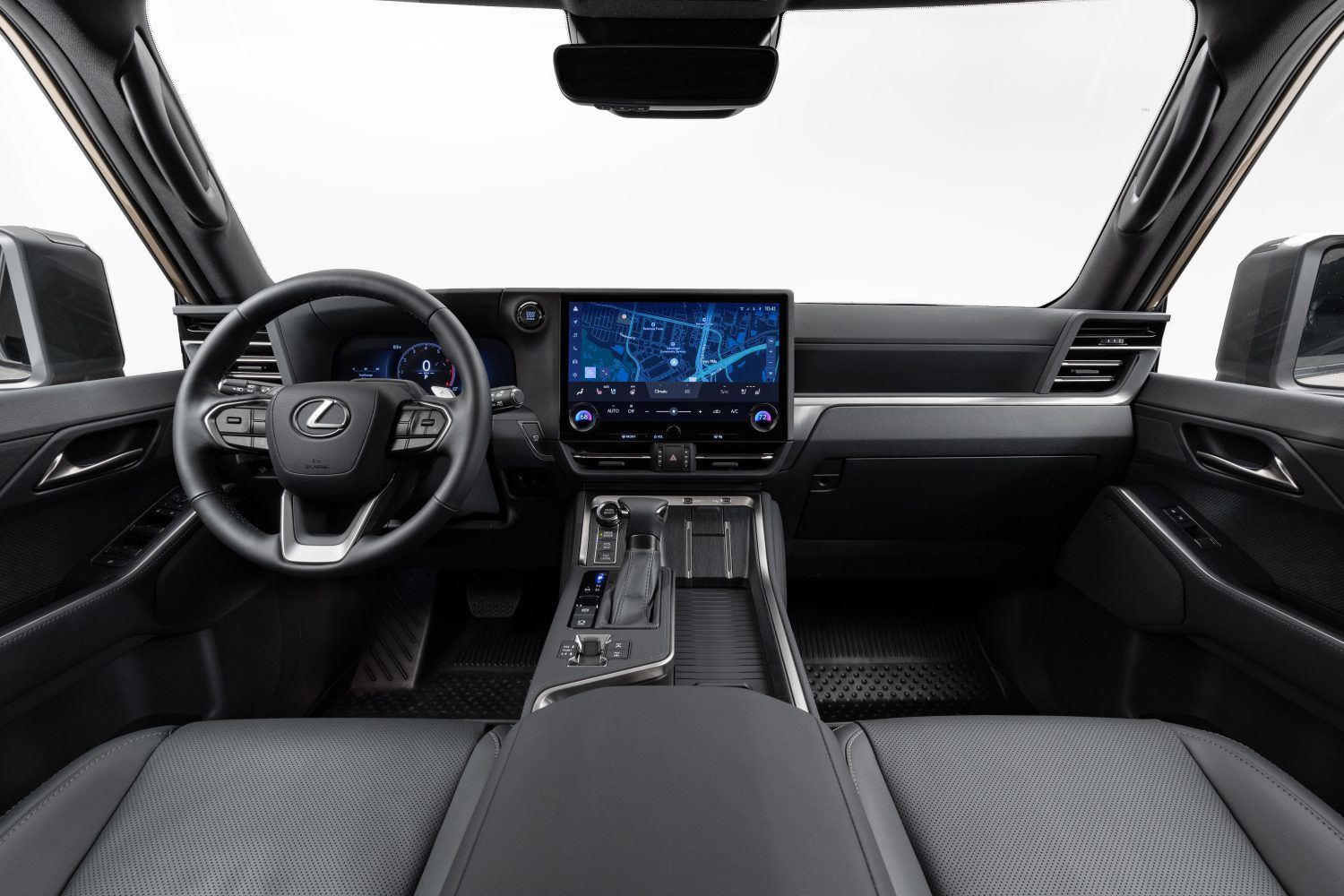 The Lexus Interface with a 14-inch touchscreen is standard, along with Service Connect, Safety Connect, and Remote Connect. The Premium trim adds Drive Connect, while the Luxury trim upgrades to a 21-speaker Mark Levinson premium audio system and a digital rear view mirror.